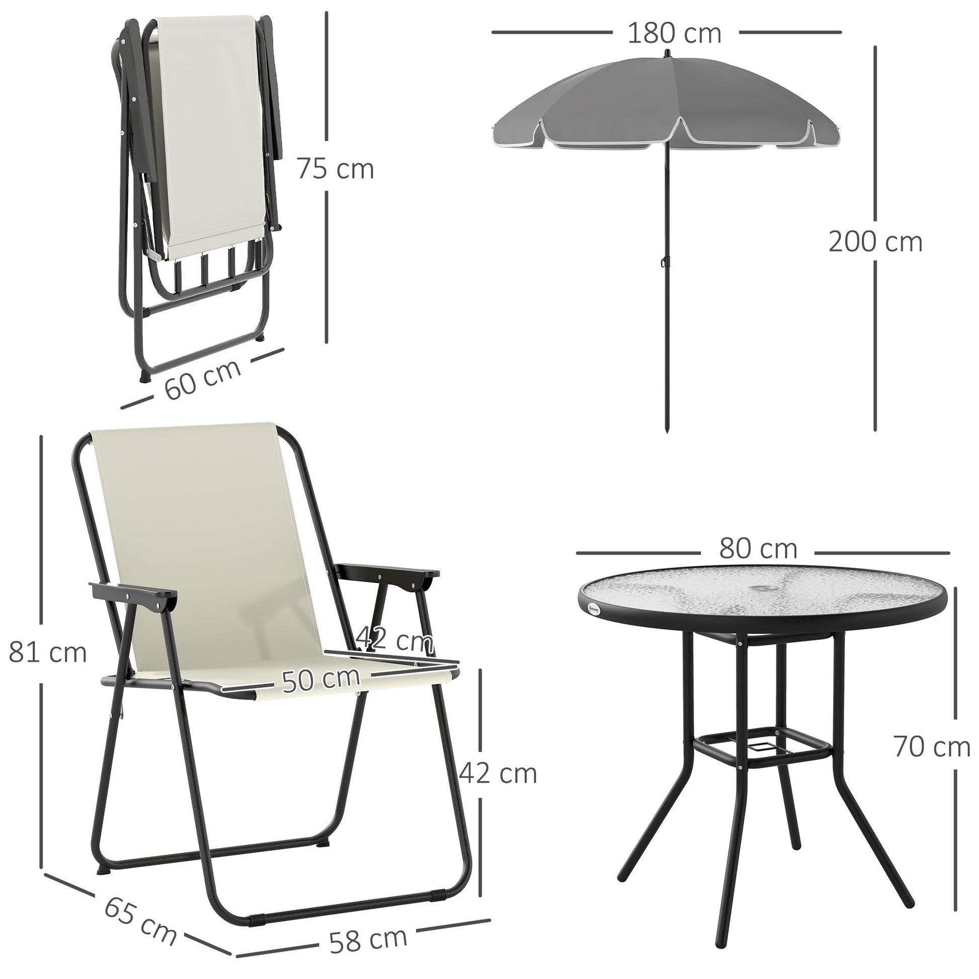 Outsunny Set Jardín 6 Pzas: Mesa Vidrio + 4 Sillas Plegables + Sombrilla, Crema